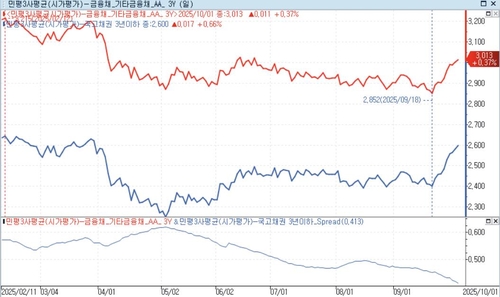 8일 온라인카지노 벌금 유니벳시장에 따르면 'AA-' 등급 기타 금융채와 국고채 3년물의 민평금리 스프레드는 지난 1일 41.3bp를 기록하며 지난 8월 18일 49.5bp보다 8.2bp 축소했다.