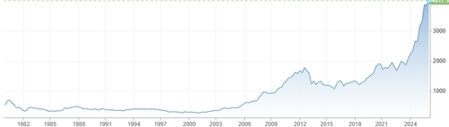 금 가격 온스당 4천달러는 200일 단순이동평균선(SMA) 대비 약 20% 높은 수준이다.