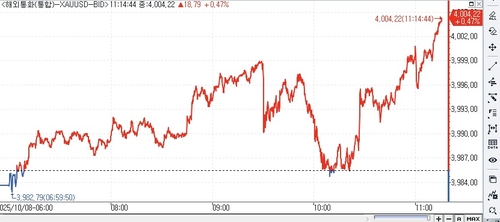 연합인포맥스 귀금속선물 종합(화면번호 6902)에 따르면 오전 11시 14분 현재 금 현물 가격은 전장보다 0.47% 오른 4,004.22달러에 거래됐다.