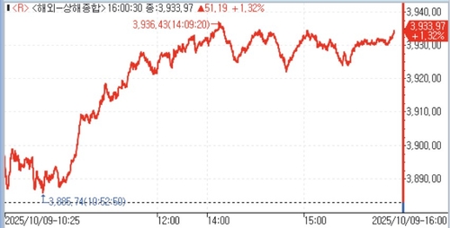 연합인포맥스 세계주가지수(화면번호 6511)에 따르면 이날 상하이종합지수는 51.2포인트(1.32%) 상승한 3,933.97, 선전종합지수는 30.54포인트(1.21%) 오른 2,549.96에 각각 거래를 마감했다.