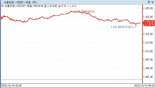 10일 서울 외환시장에서 온라인카지노 합법 유니벳-원 환율은 오전 9시 26분 현재 전장대비 19.50원 오른 1,419.50원에 거래됐다.