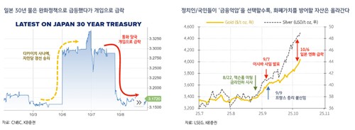 이 연구원은 금융억압이 급증하는 이자 비용 앞에서 어쩔 수 없는 정부의 선택이라고 설명했다. 일본의 다카이치 내각과 프랑스의 국민연합 극우가 정치적 세력을 형성한 것도 비슷한 상황이라고 부연했다.