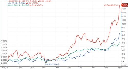 종가 신기록 경신하며 합산 시총 870조원 육박