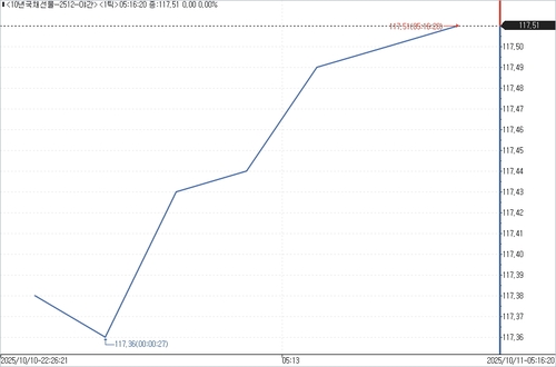 10년 국채선물은 30틱 상승한 117.51에 마감됐다. 외국인은 1계약 순매도했고, 개인은 1계약 순매수했다.