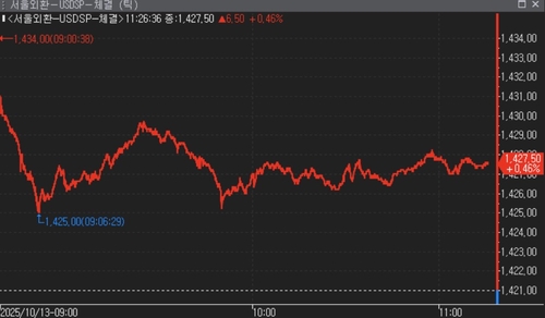 13일 서울 외환시장에서 온라인카지노 사이트 환율은 오전 11시26분 현재 전장대비 6.50원 높아진 1,427.50원에 거래됐다.