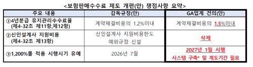 GA협회는 4년 분급 유지관리 수수료율을 계약 체결 비용의 1.5% 이내로 하고 신인 설계사 지원비용 한도 예외 규정 삭제, 1,200%룰 유예 시기를 2027년 1월로 유예하되, 시스템 구축 및 계도기간이 필요하다고 주장했다.