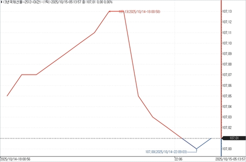 14일 서울채권시장에 따르면 3년 온라인카지노 조작 유니88선물은 야간 거래에서 전일 주간 거래 종가 대비 1틱 상승한 107.01에 마감됐다. 외국인은 22계약 순매수했고, 개인은 22계약 순매도했다.