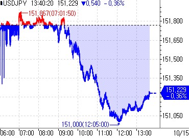 연합인포맥스 통화별 현재가(화면번호 6416)에 따르면 오후 1시40분 현재 달러-원 환율은 전일 대비 0.36% 내린 151.229엔에 거래됐다.