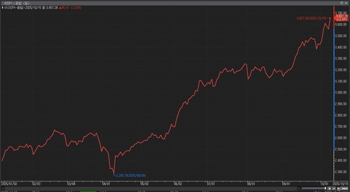 지수는 전장보다 18.83포인트(0.53%) 오른 3,580.64로 출발해 장중 내내 상승 폭을 키우며 역사적인 기록을 달성했다. 장중에는 3,659.91까지 올라 장중 기준 사상 최고치도 경신했다.