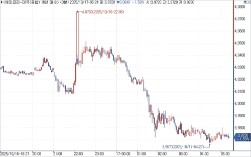 글로벌 벤치마크인 10년물 금리는 장 초반 4.0% 부근에서 순간적으로 4.0760%까지 급등하는 돌발 움직임을 보이기도 했다. 점심 무렵에는 4.0% 선을 뚫고 내려갔다.