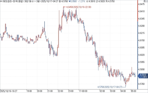 만기가 가장 긴 30년물 국채금리는 4.5840%로 5.60b 낮아졌다.