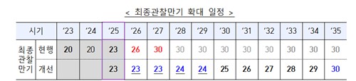 2027년까지는 현행 만기 23년을 적용하고, 2028년과 2029년엔 24년으로 확대한다. 이후 매년 1년씩 만기를 늘려 2035년엔 최종적으로 30년을 적용받게 된다.