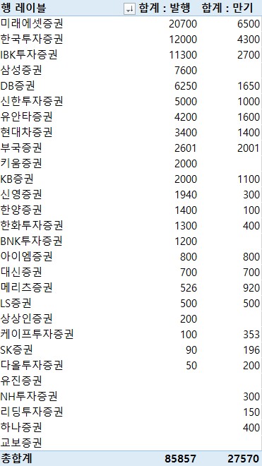 이어 한국투자증권이 1조2천억원, IBK투자증권이 1조1천300억원을 발행했다.