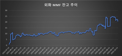연합인포맥스 설정추이(화면번호 5312)에 따르면 지난 17일 전체 외화 MMF 설정액은 2조1천억 원가량이다. 올해 7월에 2조4천억 원까지 늘어났지만, 성장세는 둔화한 모습이다. 지난 4월에는 1조 원 아래로 잔고가 떨어지기도 했다.