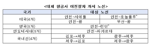 해당 노선의 경우 해외 경쟁 당국에서도 슬롯, 운수권 이전에 대한 처분이 있었고, 이에 우선 이전 조치가 이루어졌다고 공정위는 설명했다.