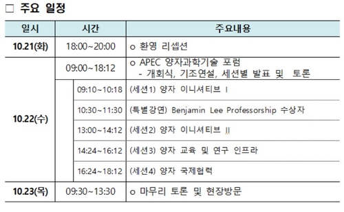 (서울=연합인포맥스) 윤영숙 기자 = 과학기술정보통신부가 오는 22일 광주 김대중컨벤션센터에서 '아시아태평양경제협력체(APEC) 양자과학기술 포럼'을 개최한다고 21일 밝혔다.