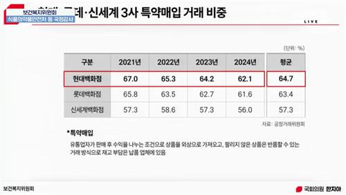 한 의원은 현대백화점의 특약매입 계약 비중이 가장 높다고 지적하며 갑질 아니냐고 따져 물었다. 그러면서 고질적인 계약 시스템을 대대적으로 개선해야 한다고 강조했다.