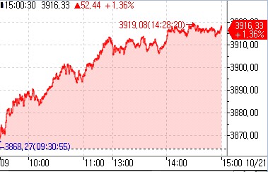연합인포맥스 세계주가지수(화면번호 6511)에 따르면 이날 상하이종합지수는 전장대비 1.36% 상승한 3,916.33에 거래를 마감했다.