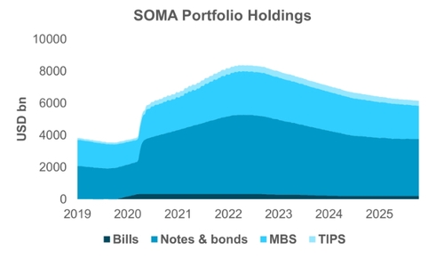 그는 "(연준)포트폴리오 안에서 재정증권(T-bill, 만기 1년 이하 국채)이 부족하고, 주택저당증권(MBS) 비중이 여전히 크다는 점을 고려하면 이 같은 의지는 현재 수준에서 희망 사항에 불과하다고 본다"고 언급했다.