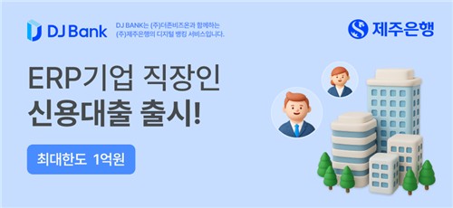 22일 금융권에 따르면 제주은행은 'DJ BANK'의 첫 상품으로 'ERP 기업 직장인 신용대출'을 24일 출시한다.