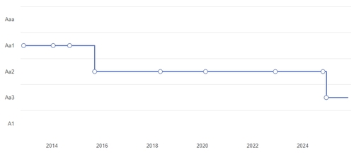 앞서 또 다른 국제 신평사 S&P는 지난 17일 프랑스의 국가 신용등급을 'AA-'에서 'A+'로 한 단계 하향했고, 지난달에는 피치가 같은 결정을 내린 바 있다. 무디스의 'Aa3' 등급은 S&P와 피치의 등급 체계에서 'AA-'에 해당한다.