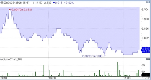 국고채 10년 지표물인 25-5호는 전 거래일 대비 0.9bp 내린 2.896%로 개장했다.