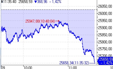 지수는 하락 개장한 뒤 낙폭을 확대했다.