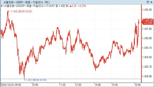 22일 서울 외환시장에서 카지노 입플 환율은 오후 5시 12분 현재 전장대비 4.20원 오른 1,432.00원에 거래됐다.