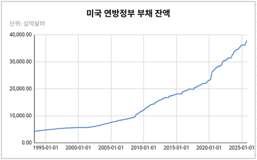 (서울=연합인포맥스) 김성진 기자 = 미국 연방정부의 부채 잔액이 사상 처음으로 38조달러 선을 넘어섰다.
