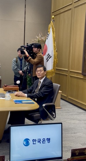 그는 손짓으로 퇴장을 유도했고, 취재진이 나가면서 10월 금통위가 공식 개회했다.