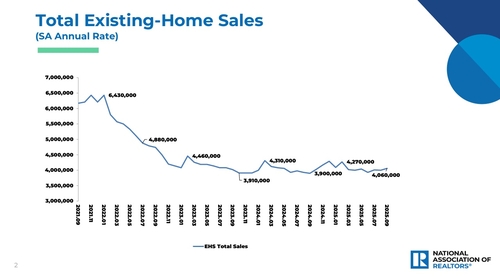 23일(현지시간) 전미 부동산중개인협회(NAR)에 따르면 지난 9월 미국의 기존 주택 판매 규모는 계절 조정 기준 전달 대비 1.5% 늘어난 연율 406만채로 집계됐다.