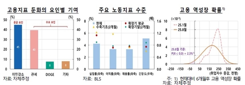 한국은행이 23일 발표한 '미국 고용지표 둔화 요인과 현 노동시장 상황 평가' 보고서에 따르면 전체 고용 감소의 45%는 이민 감소, 40%는 관세정책, 연방공무원 감축이 8%를 차지했다.