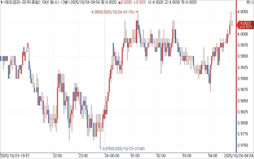10년물 금리, 장중 '4.0%' 소폭 상회…유가 여파에 기대 인플레↑