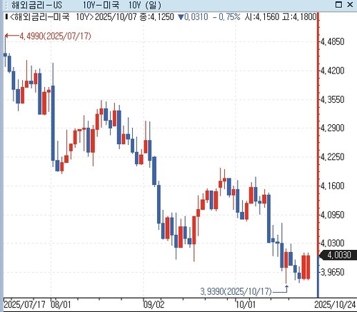 특히, 미국 10년 국채 금리는 이달 10일부터 낙폭을 빠르게 확대하며 4%선이 무너졌다.