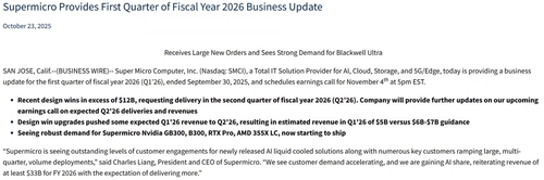 슈퍼마이크로는 오는 11월 4일 실적발표에서 2026회계연도 2분기 납품 및 매출 전망에 대한 추가 업데이트를 제공할 예정이다.