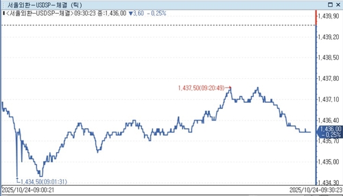 환율은 개장 직후 1,434.50원까지 밀리며 장중 저점을 찍었으나 이후 조금씩 반등해 1,437.50원에서 고점을 확인했다.
