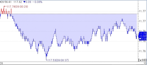 10년 국채선물은 10틱 내린 117.61이었다. 외국인이 약 2천100계약 순매도했고 증권이 1천800여계약 순매수했다.