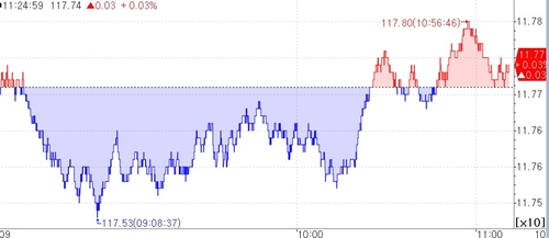 10년 국채선물은 8틱 상승한 117.79이었다. 외국인이 4천400계약 매도했고, 증권이 4천300계약가량 매수했다.