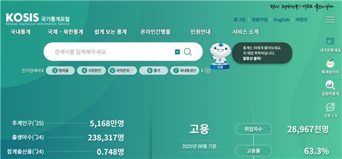 (세종=연합인포맥스) 최욱 기자 = 국가데이터처는 지난달 국가정보자원관리원 화재로 서비스가 중단된 국가통계포털(KOSIS) 시스템 복구가 완료돼 24일 오전 10시부터 정상 운영 중이라고 밝혔다.