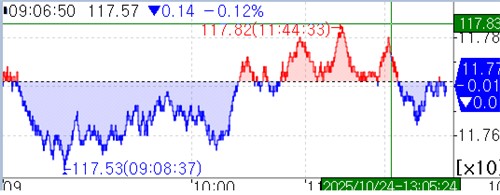 10년 국채선물은 2틱 내린 117.69이었다. 외국인이 5천756계약 팔았고 증권이 5천907계약 사들였다.
