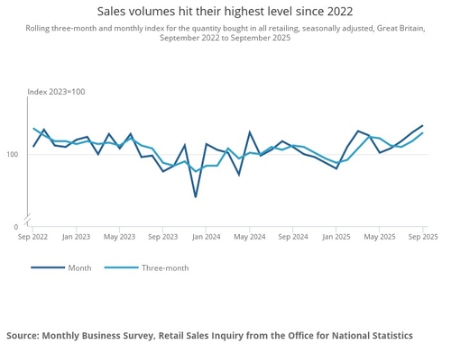 ONS는 "지난 7월과 8월 좋은 날씨가 의류 판매에 도움이 됐으며, 통신판매업체들이 8개월 연속 월간 판매 증가를 기록해 소매판매가 증가했다"면서도 "자동차 연료 판매량 부진이 일부 증가 폭을 상쇄했다"고 설명했다.