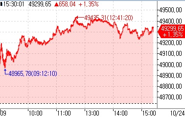(서울=연합인포맥스) 김지연 기자 = 24일 일본증시는 미국과 중국 간 정상회담이 확정됐다는 소식에 상승하며 49,000선을 회복했다.