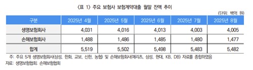 문제영 보험연구원 연구위원은 26일 '새정부의 부동산 대책 분석 및 시사점' 보고서에서 "생명보험사와 손해보험사의 약관대출 잔액은 하락세를 보이고 있다"고 말했다.