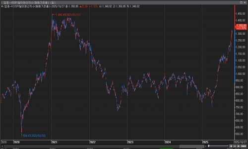 연합인포맥스 달러환산지수(화면번호 3238)에 따르면 달러 환산 코스피는 아직 1,348 수준에 그쳤다. 과거 사상 최고치를 기록했던 2021년 1월 11일(1,444.49)과는 여전히 상당한 격차를 보였다.