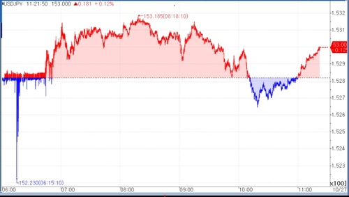 오전 11시 21분 현재 달러-엔 환율은 전장보다 0.12% 오른 153엔에 거래됐다.