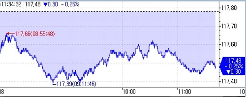 10년 국채선물은 32틱 떨어진 117.46을 기록했다. 외국인이 약 200 계약 순매도했고, 개인이 260계약가량 순매수했다.