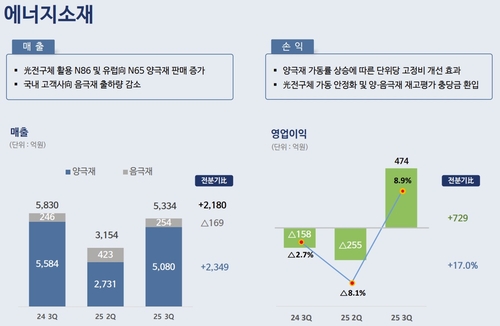 (서울=연합인포맥스) 이재헌 윤은별 기자 = 포스코퓨처엠[003670]의 올해 3분기 영업이익이 시장 전망치를 대폭 상회했다. 영업이익률이 3년래 최고치를 달성하면서, 투자자들의 주식 매수 선택이 틀리지 않았음을 증명했다.