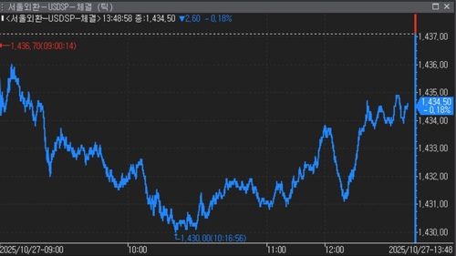 27일 서울 외환시장에서 온라인카지노 조작 유니88원 환율은 오후 1시48분 현재 전장대비 2.60원 내린 1434.50원에 거래됐다.