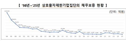 예외적으로 허용되는 제한제외대상 채무보증(470억 원)은 지난해(1천267억 원) 대비 감소했다. 여신상환, 지정제외 등에 따른 결과다.