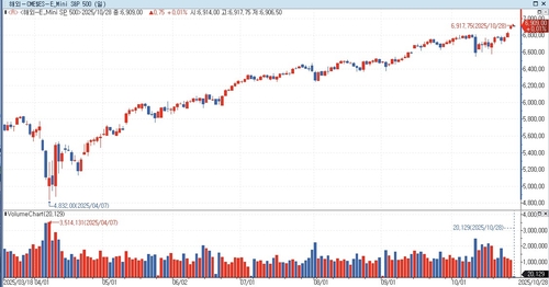 연합인포맥스 지수선물 통합화면(화면번호 6520)에 따르면 한국 시각으로 오전 10시18분 기준 E-미니 S&P500 지수 선물은 전장 대비 0.01% 오른 6,909.00에 거래됐다.